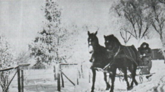 sondern Pferde- und Arbeitsschlitten gemeint. Weil alte Arbeit von Hand erledigt wurde, auch das Laden, war der Holztransport mit dem Schlitten besser und einfacher als mit einem Wagen.