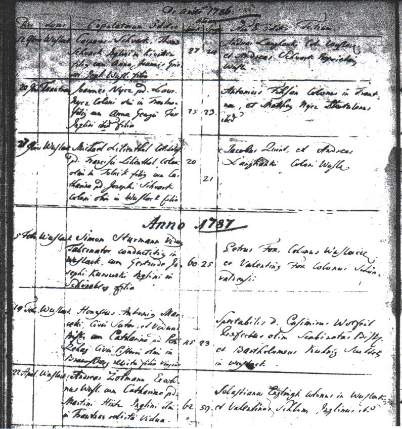 Traueintrag Caspar 1786